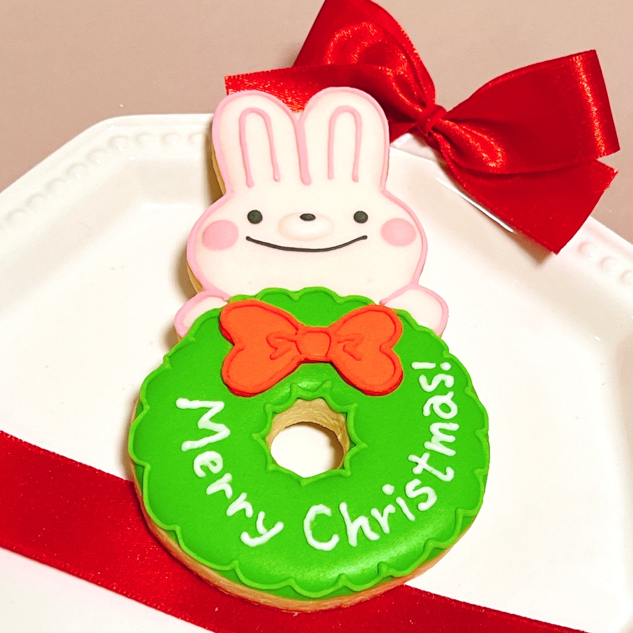 【うさぎリース】アイシングクッキー お配り リボン付き プチギフト クリスマス サンタクロース くま